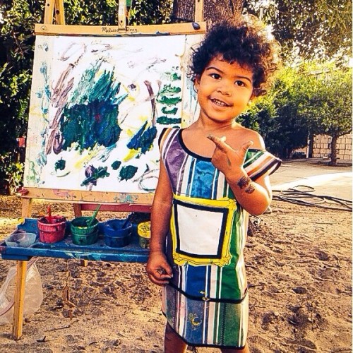 This week, I have a photo of one of my little Picassos. This is my g’son, B., and he loves to paint. He has all the painting accoutrements, and I am especially pleased because I bought them for him as a birthday present, and it is heartening to see them bring him so much joy. Since he received them, he’s become a pint-sized artist. My wish for him is that as he grows older, he maintains his child-like curiosity.